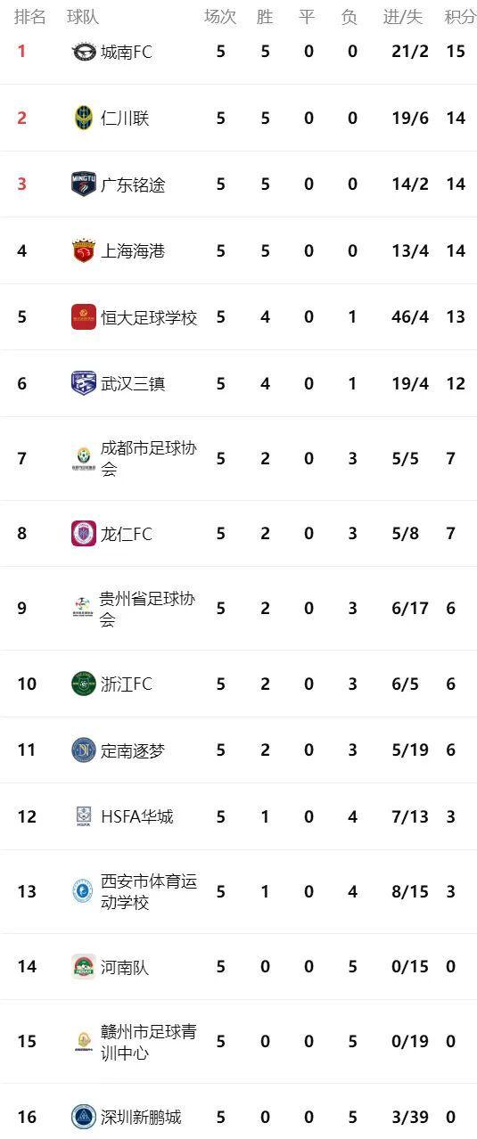 寒冰发自江西定南1月17日,“462杯”第一届中韩青少年足球对抗赛进入第6比赛日,也是第一阶段的收官战。本轮将决定第一阶段各队排名,积分前8名球队进入争冠组,后8名球队进入排位组。已锁定争冠组名额的恒大足校和广东铭途,将分别在第6轮对阵目前排名前两位的城南FC和仁川联。城南FC开赛5轮豪取15分,仁川联仅在面对恒大时被逼入点球大战但仍最终取胜,广东两强能否打破韩国双雄的不败金身成为最大看点。